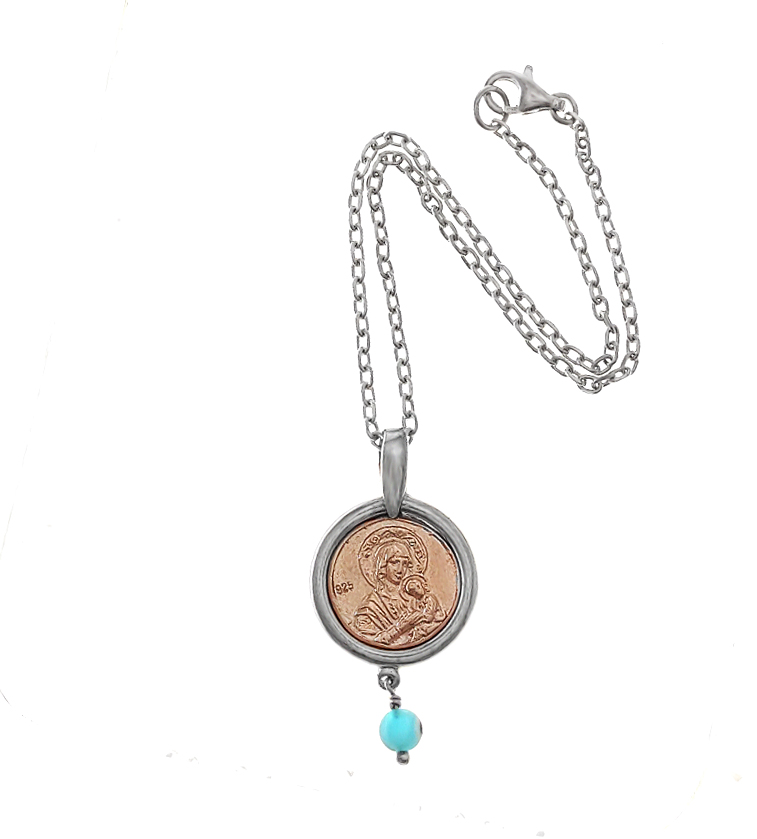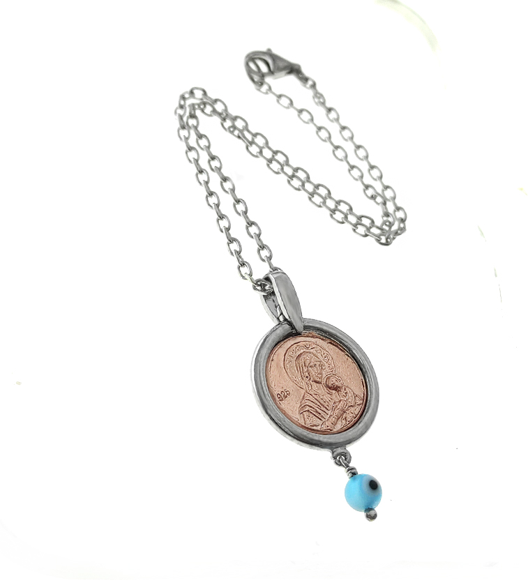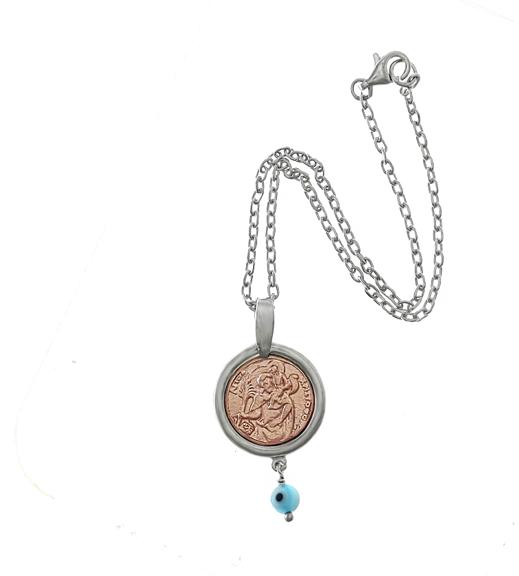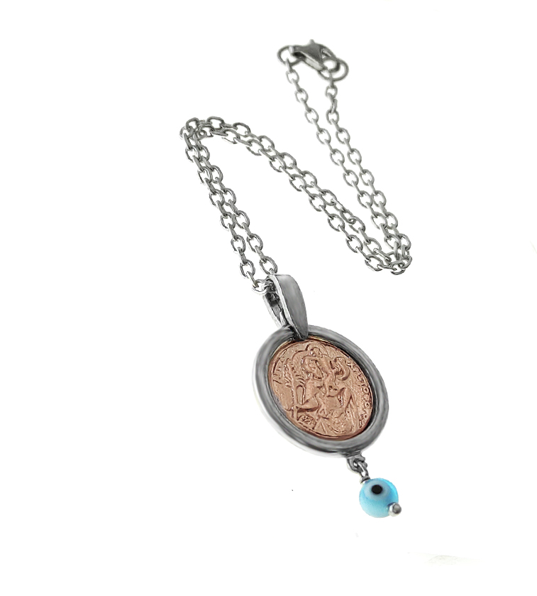 Άγιος Χριστόφορος διχρωμία σε μοντέρνα γραμμή διπλής όψεως με Παναγία και ματάκι.