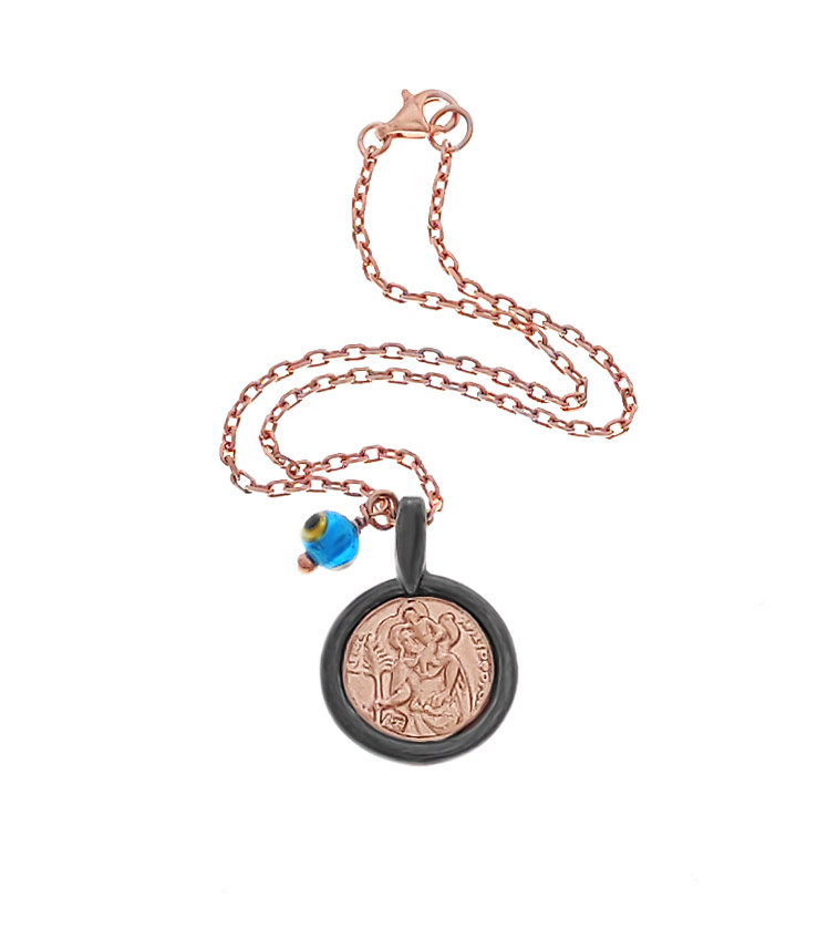Άγιος Χριστόφορος διχρωμία σε μοντέρνα γραμμή διπλής όψεως με Παναγία και ματάκι.