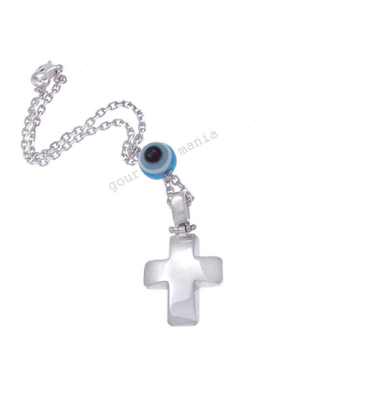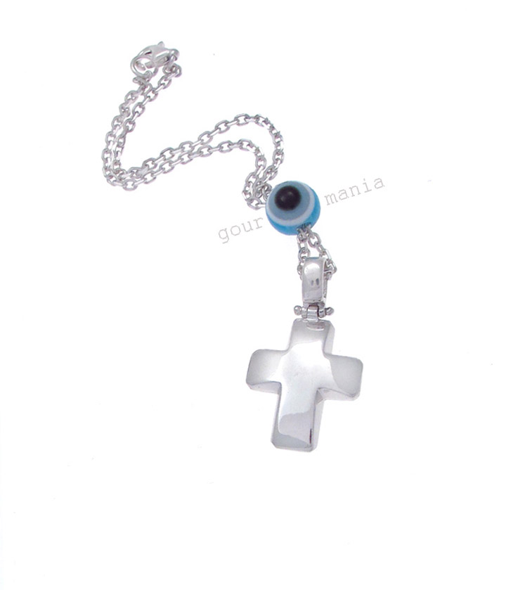 Ασημένιος Σταυρός με μάτι και αλυσίδα.