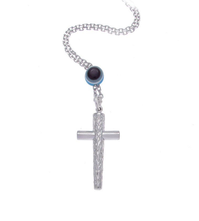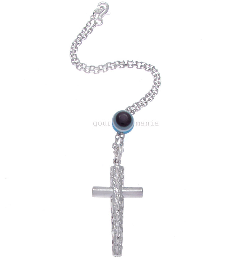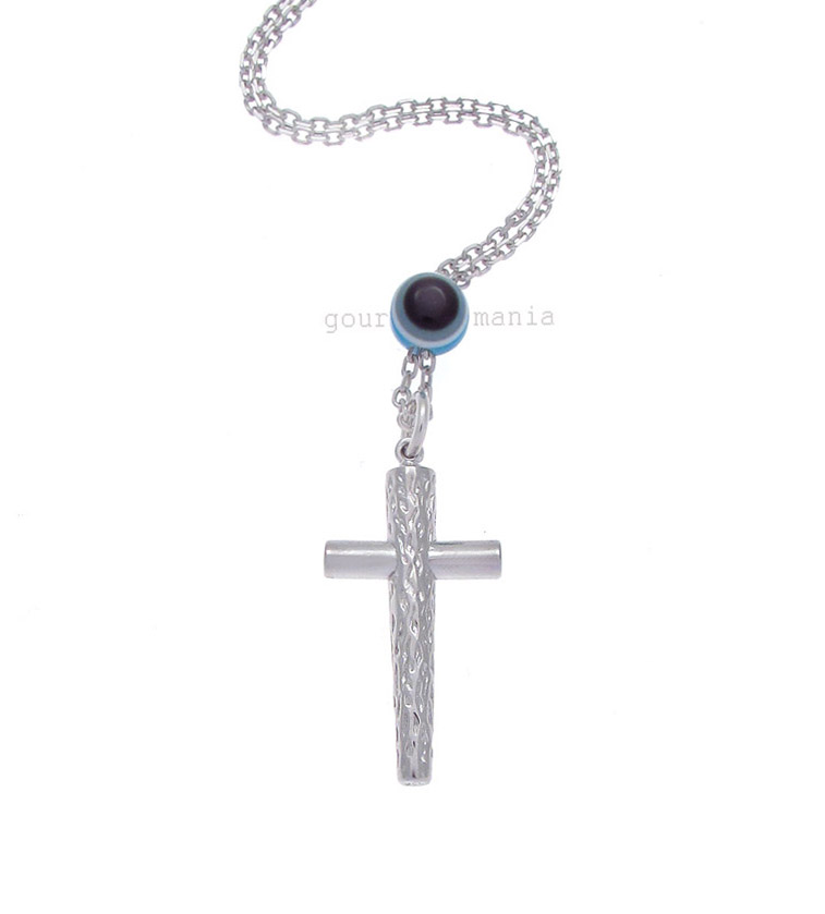 Ασημένιος Σταυρός με μάτι και αλυσίδα.