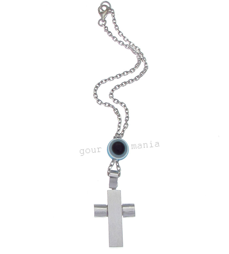 Ασημένιος Σταυρός με μάτι και αλυσίδα.
