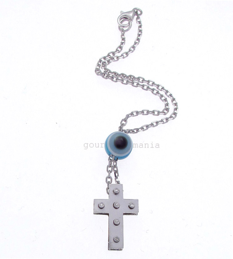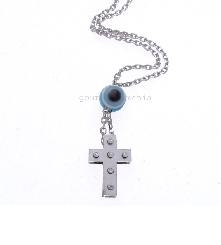 Ασημένιος Σταυρός σε μοντέρνα γραμμή με μάτι και αλυσίδα.