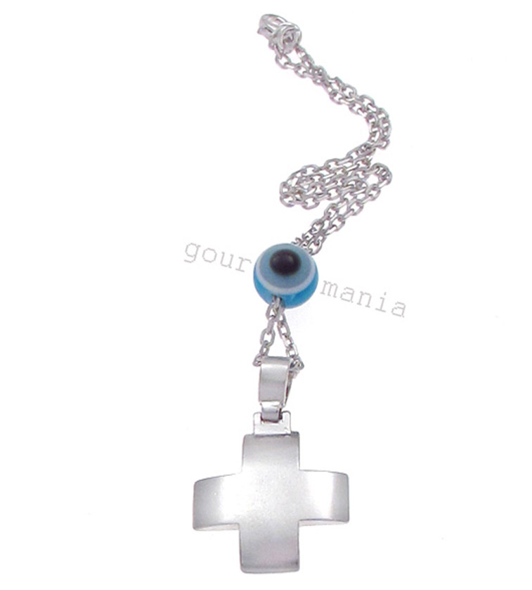 Ασημένιος Σταυρός με μάτι και αλυσίδα.