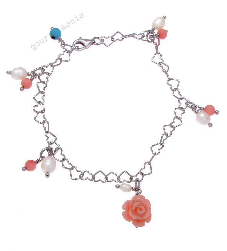Ασημένιο βραχιόλι με κοραλλένιο τριαντάφυλλο.