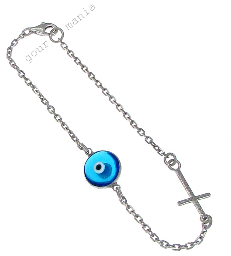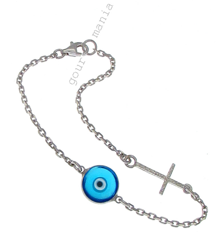 Ασημένιο βραχιόλι με μάτι και σταυρό.